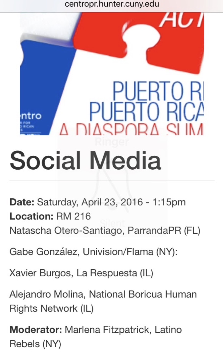 - Co-presenter at The Center for Puerto Rican Studies/ el centro de estudios puertorriqueños Puerto Rico Puerto Ricans: A Diaspora Summit at Hunter College, CUNY.