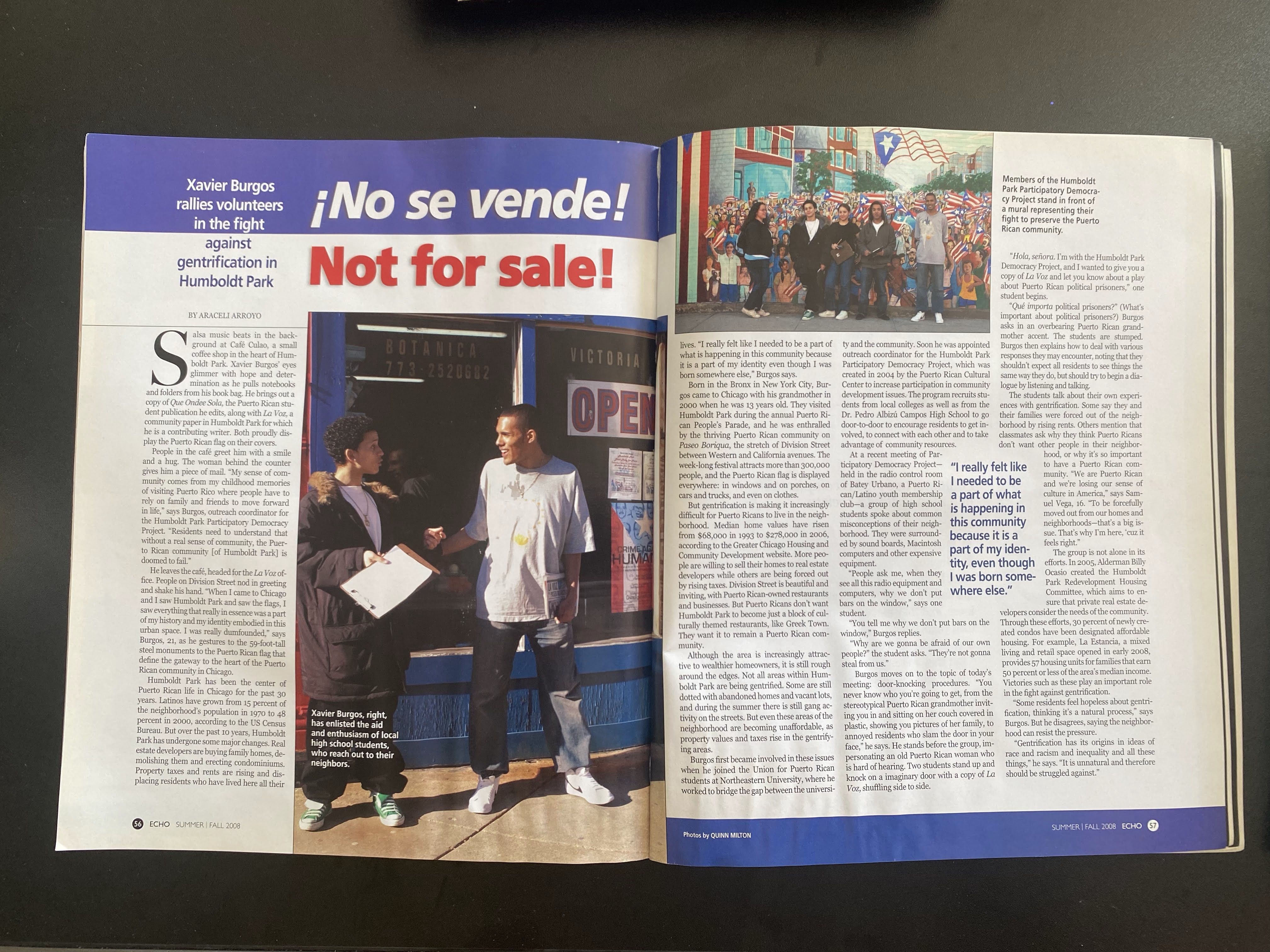 - Coordinator of the Participatory Democracy Project and co-founder of ¡Humboldt Park NO SE VENDE!/ NOT FOR SALE! campaign to combat gentrification.